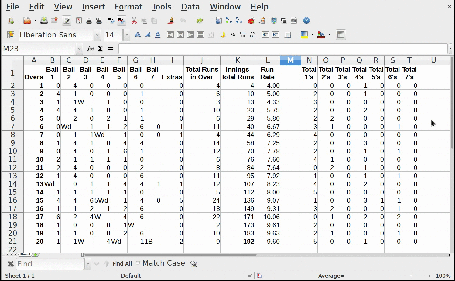 3. If any corresponding columns' runs are not taken, in a particular over, then enter "zero" in that corresponding cell of column and row: